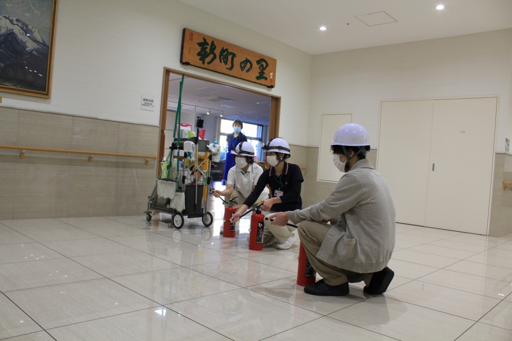 11月20日(木)あゆみえんでは大規模防災訓練を実施しました。午前中は震度7の地震と施設内の火災を想定し、初期消火、避難誘導、情報伝達などの訓練を行いました。