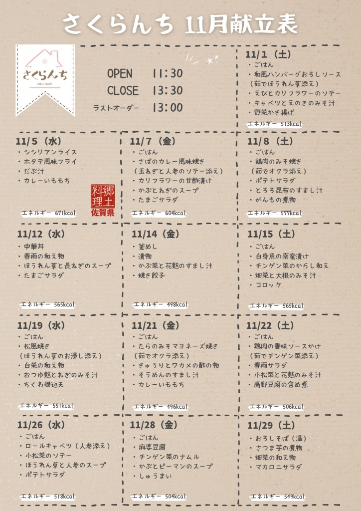 さくらんち 11月献立表🌸
