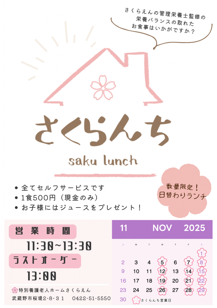 会食サービス「さくらんち」11月献立のお知らせです。