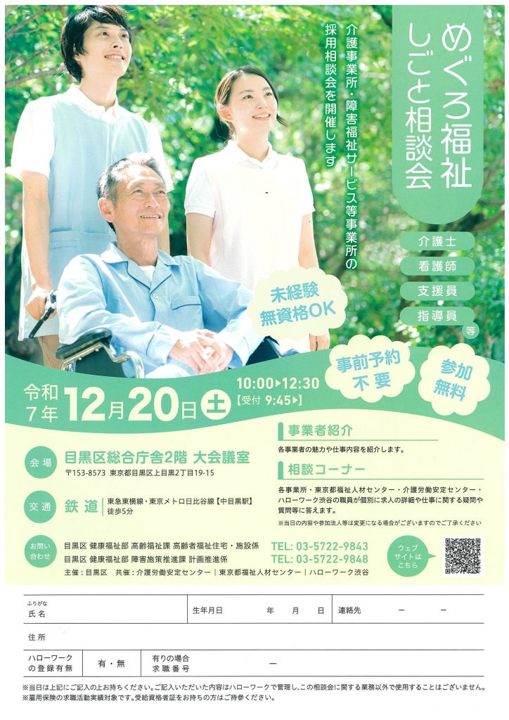 こぶしえんは『めぐろ福祉しごと相談会』に参加します!