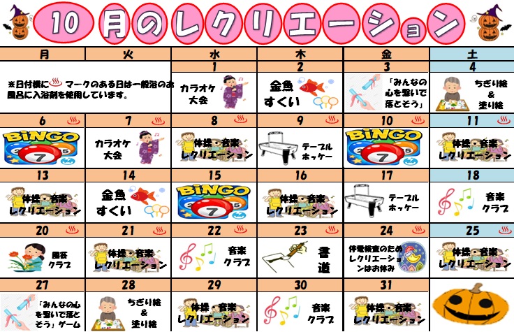 10月度イベントのご案内です。振替利用も待ちしております♪