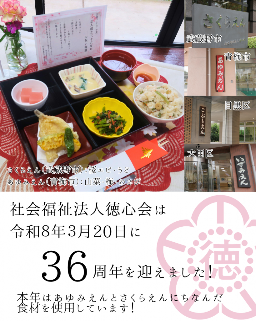 令和8(2026)年3月20日を持ちまして社会福祉法人徳心会は、創立36周年を迎えました。