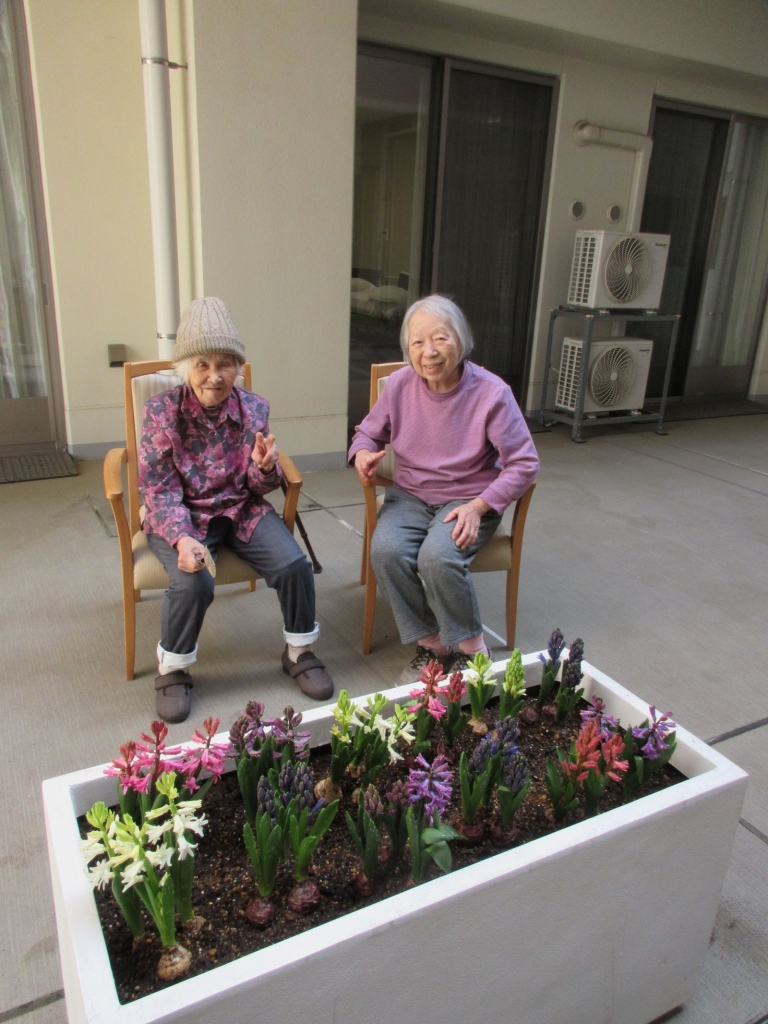 今日はお天気が良かったので、ご利用者と外に出てガーデニングを楽しみました。