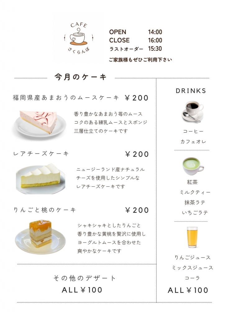 cafe☕︎さくらんぼ 1月のお品書き🍓